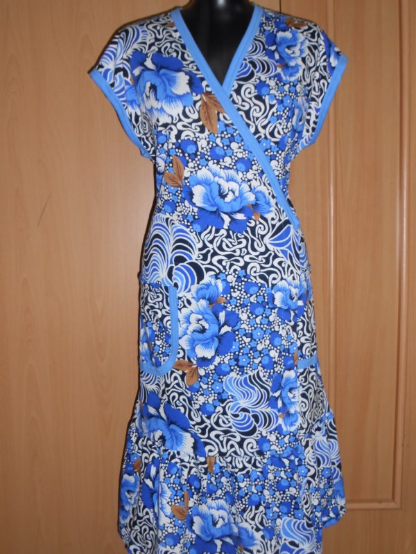 Халат "Кимоно" на запах, по низу широкая оборка, 2 накладных кармана.